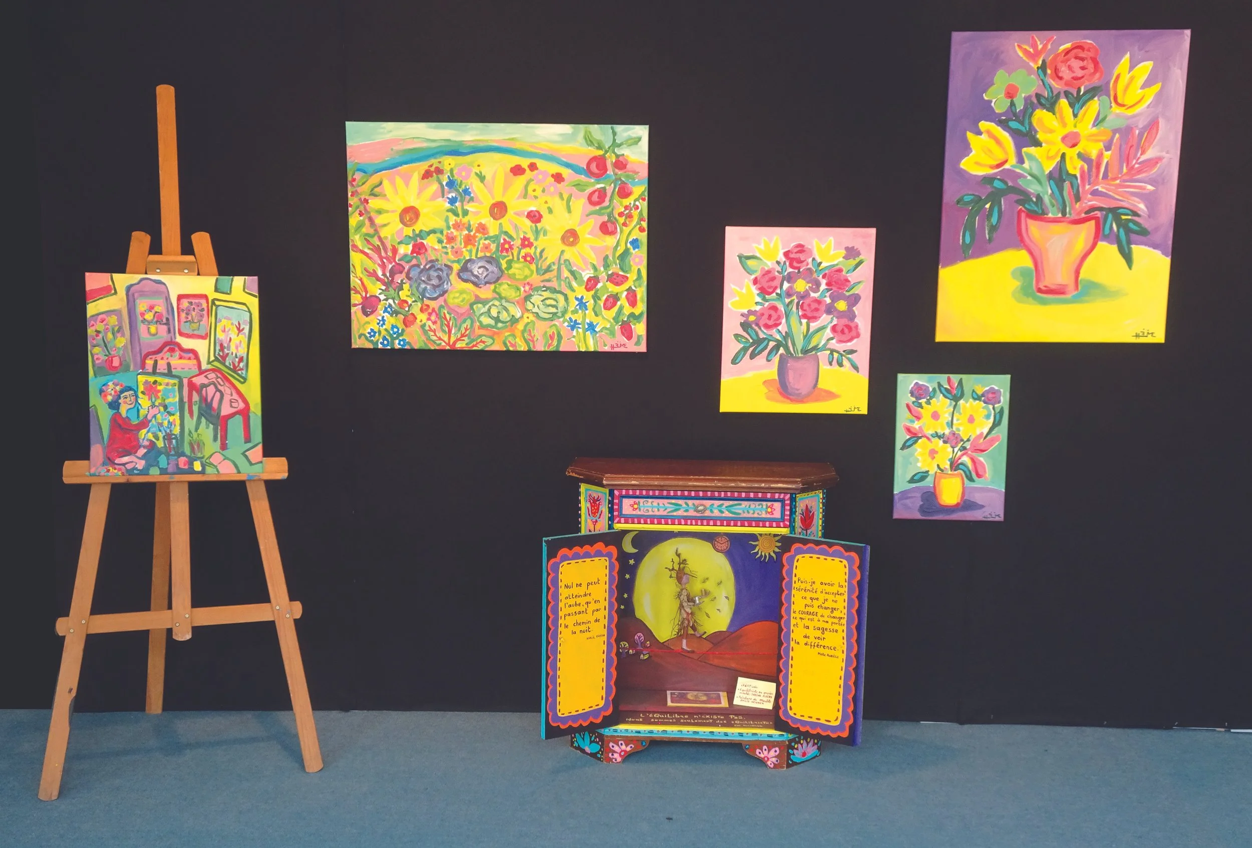 L’asbl Terre Art Terre propose également une exposition nommée “Magie de l’émerveillement”, composée d’illustrations originales, de toiles, de meubles peints avec sculptures à l’intérieur, des dessins de lettres et d’autres trésors…